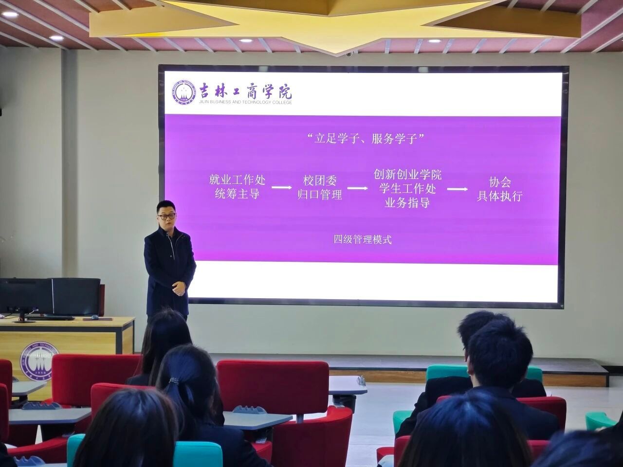 为畅通师生沟通渠道,精准对接学生就业、升学及发展需求,夯实学子成长帮扶根基,助力青年学子明晰发展路径、提升就业竞争力,4月1日,学校在博学楼A区433举办了吉林工商学院大学生就业协会成立仪式。就业工作处、学生工作处、团委、创新创业学院相关指导教师出席仪式,仪式由校团委组织部部长刘健男主持。